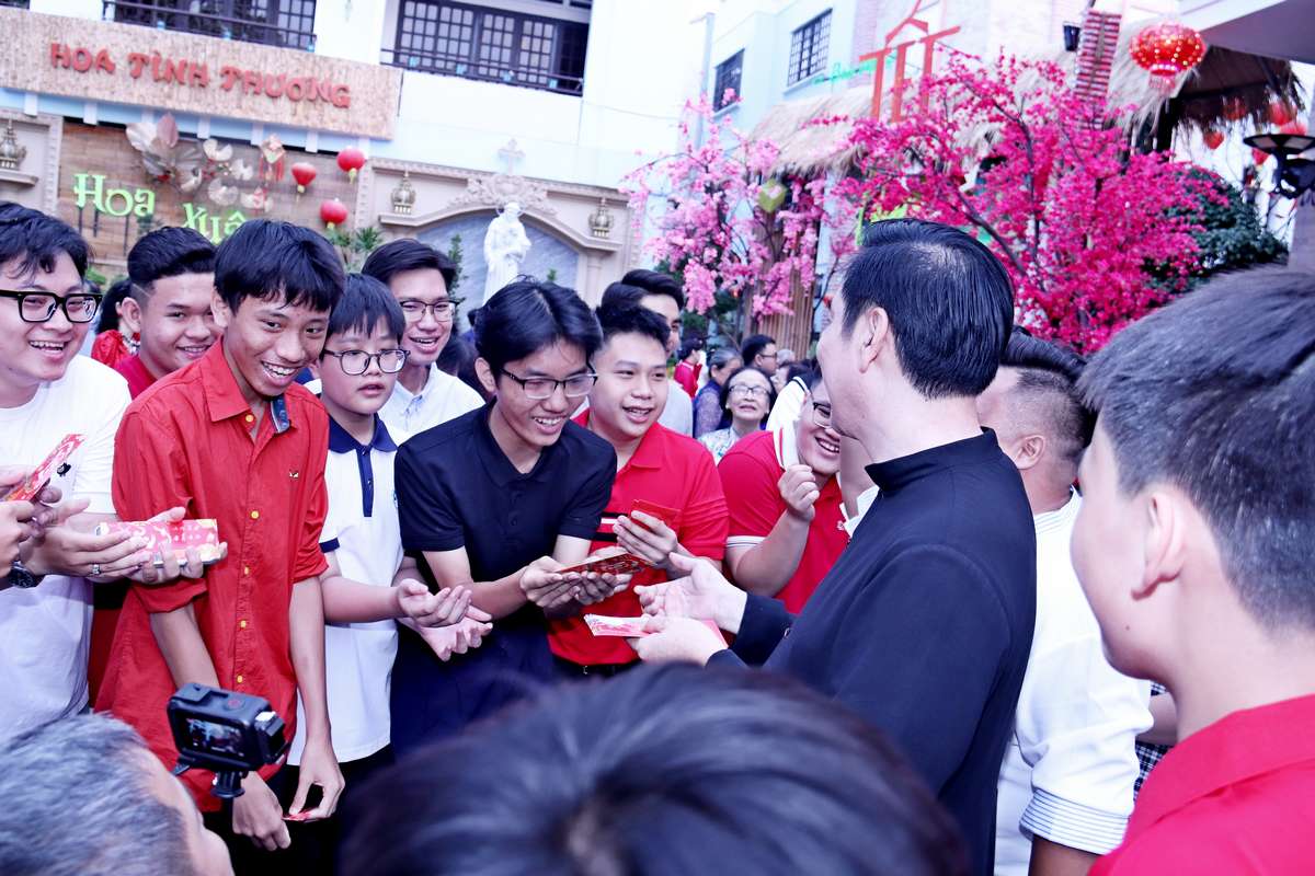 Sau Thánh lễ, các linh mục và cộng đoàn cùng quây quần trong khuôn viên giáo xứ, chia sẻ niềm vui đầu năm và trao nhau những lời chúc tốt đẹp nhất.