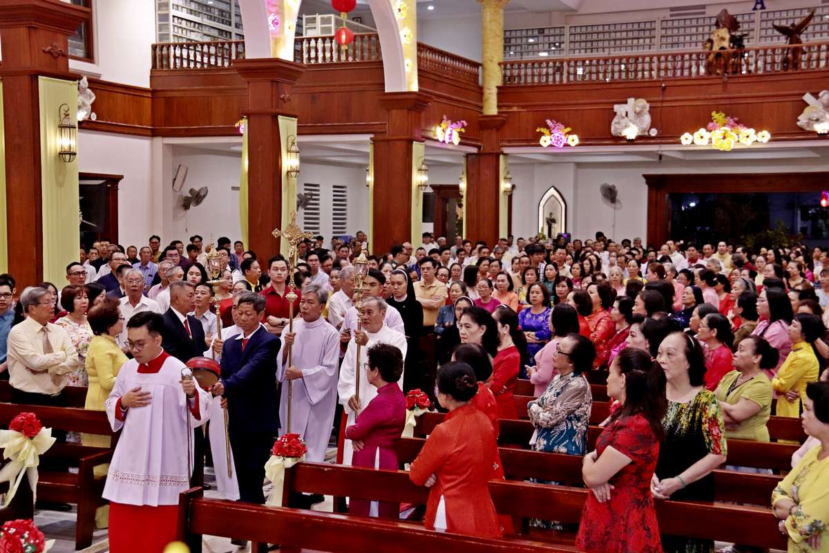 Thánh lễ được khởi sự với đoàn rước long trọng từ cuối nhà thờ tiến lên cung thánh.